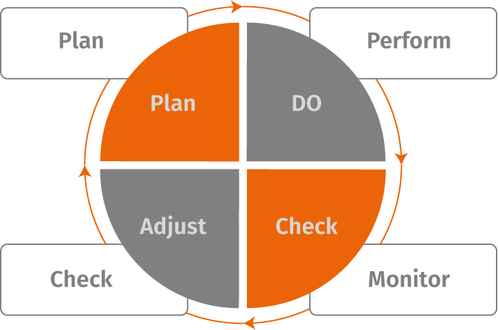 Utilizing the PDCA (Plan Do Check Adjust) approach to control and provide continuous improvement of our processes.